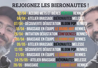 en 2026 Les Biéronautes proposeront des ateliers de dégustation à Rennes à Bloom Pop (le mardi) et à Confidences des Vignobles (le jeudi)